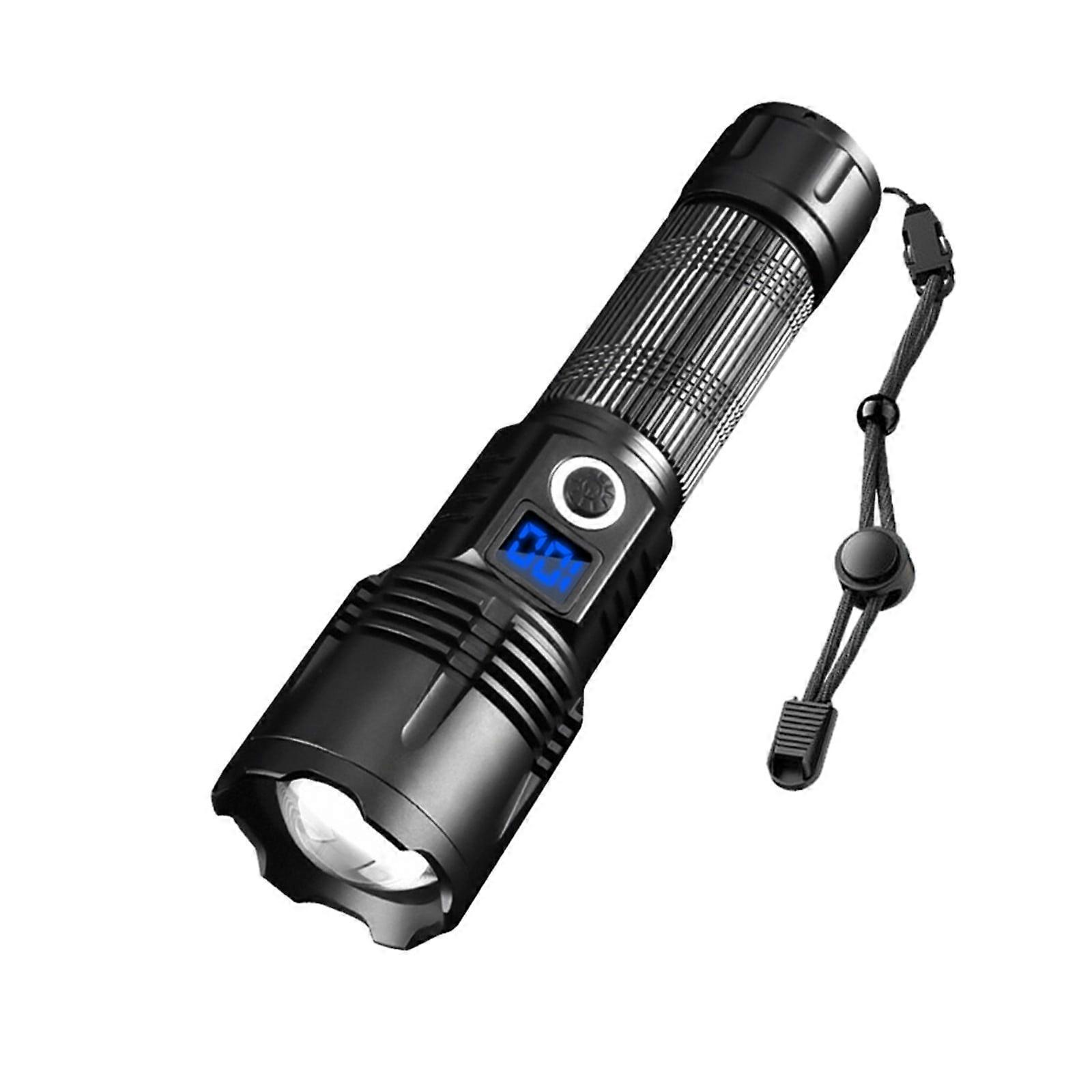 Portable LED Flashlight with Power Display, Telescopic Zoom, IPX6 Waterproof, Compatible with Yonrjhukm, Aluminium Alloy Torch Lamp