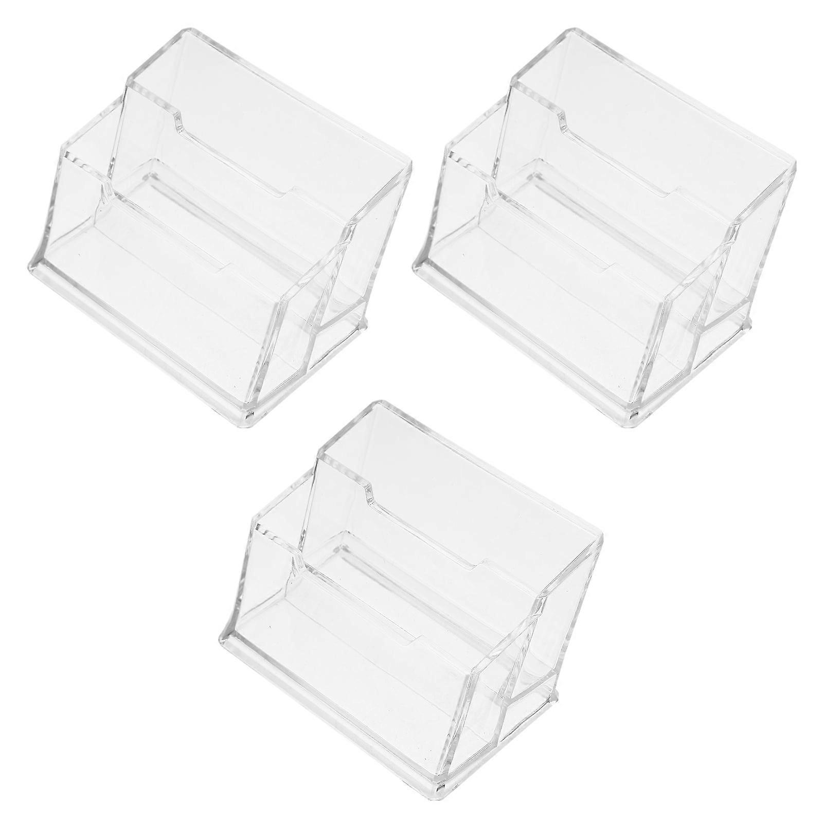 3 Pcs Business Card Holder Storage Box Name Rack Display Shelf Shelves Clear Stand Single Layer Plastic Office