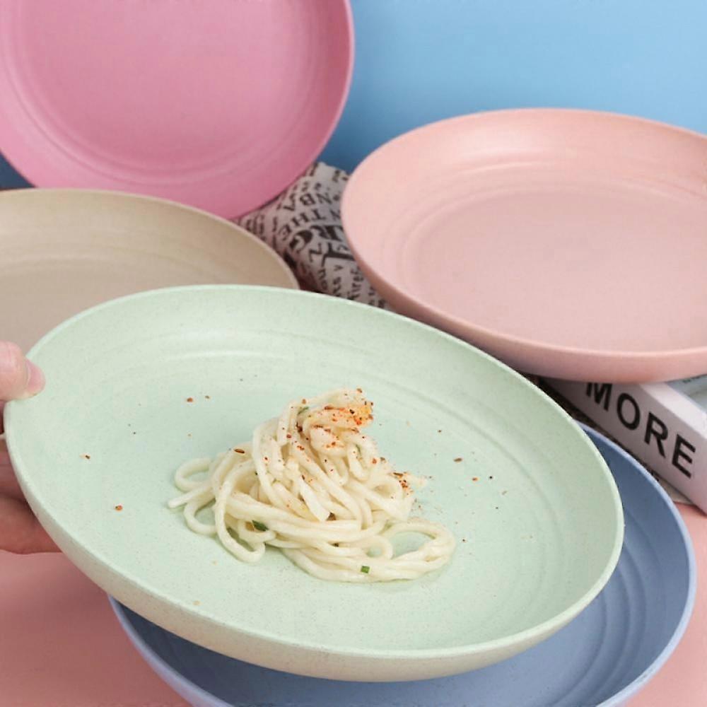 1-Pack Wheat Straw Plates 8.75" Unbreakable Dishwasher Safe Eco-Friendly Tableware, Assorted Colors