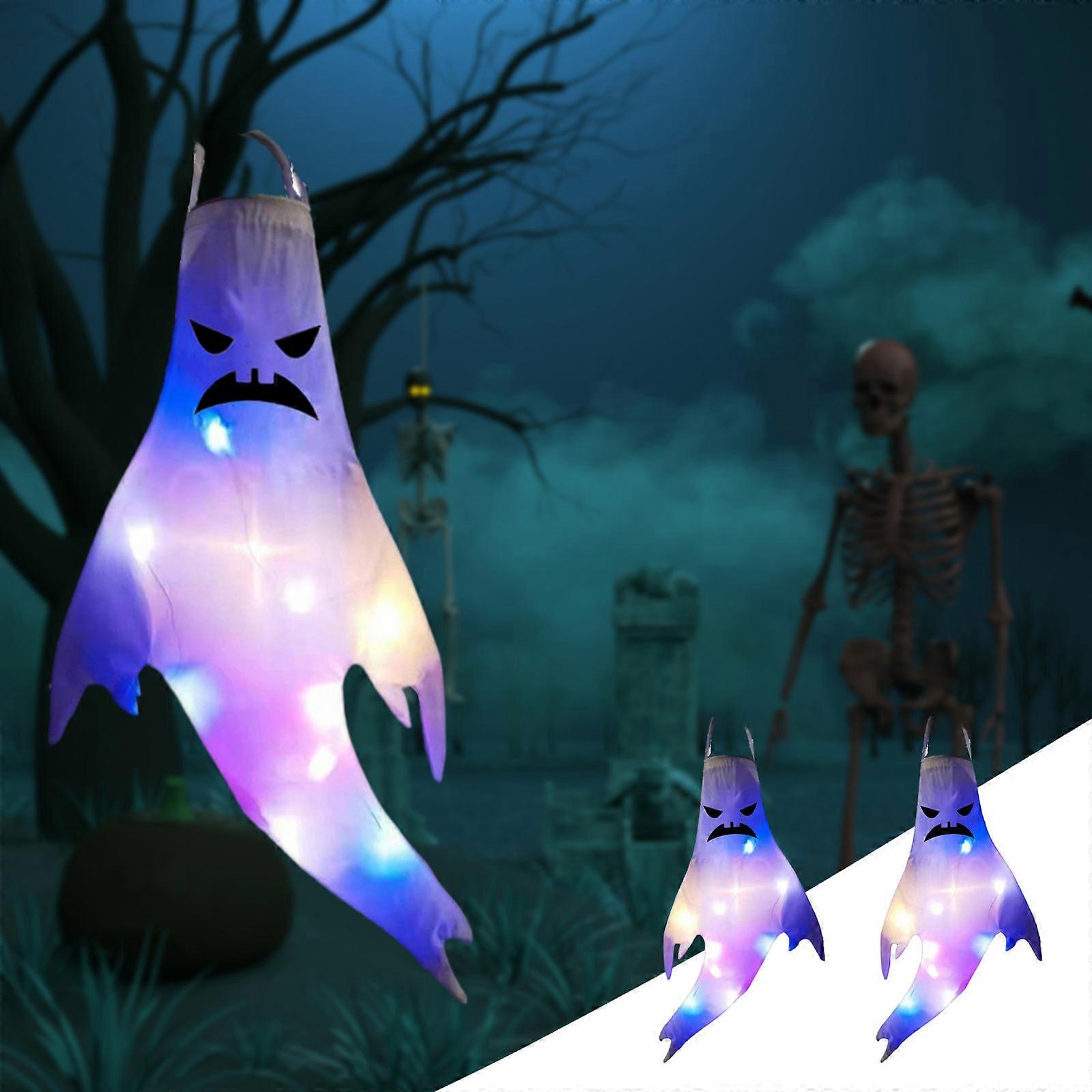 2Pcs Halloween Ghost Windsocks with LED Light, Outdoor Spooky Hanging Flags for Party Decorations