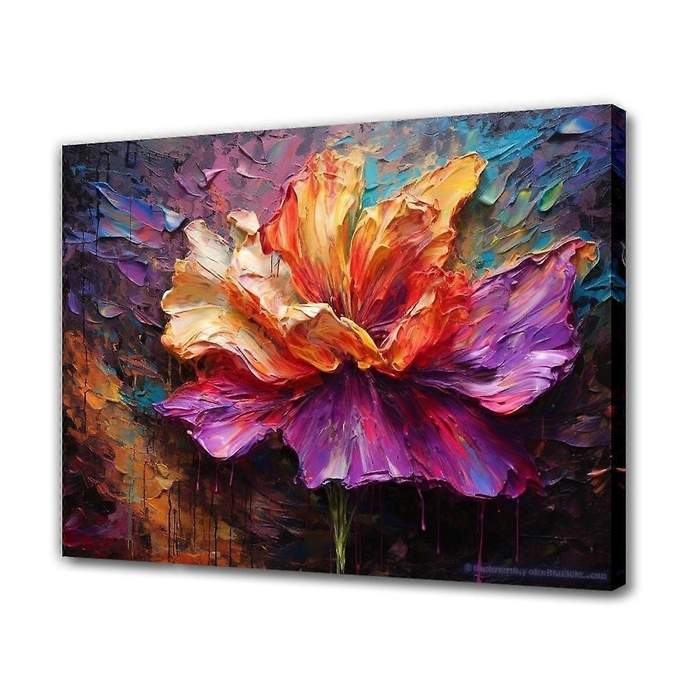 Vibrant Purple & Red Flower Painting Canvas Poster, Brown Background, 16x24inch - Frame-style, Bedroom Office Decor Gift