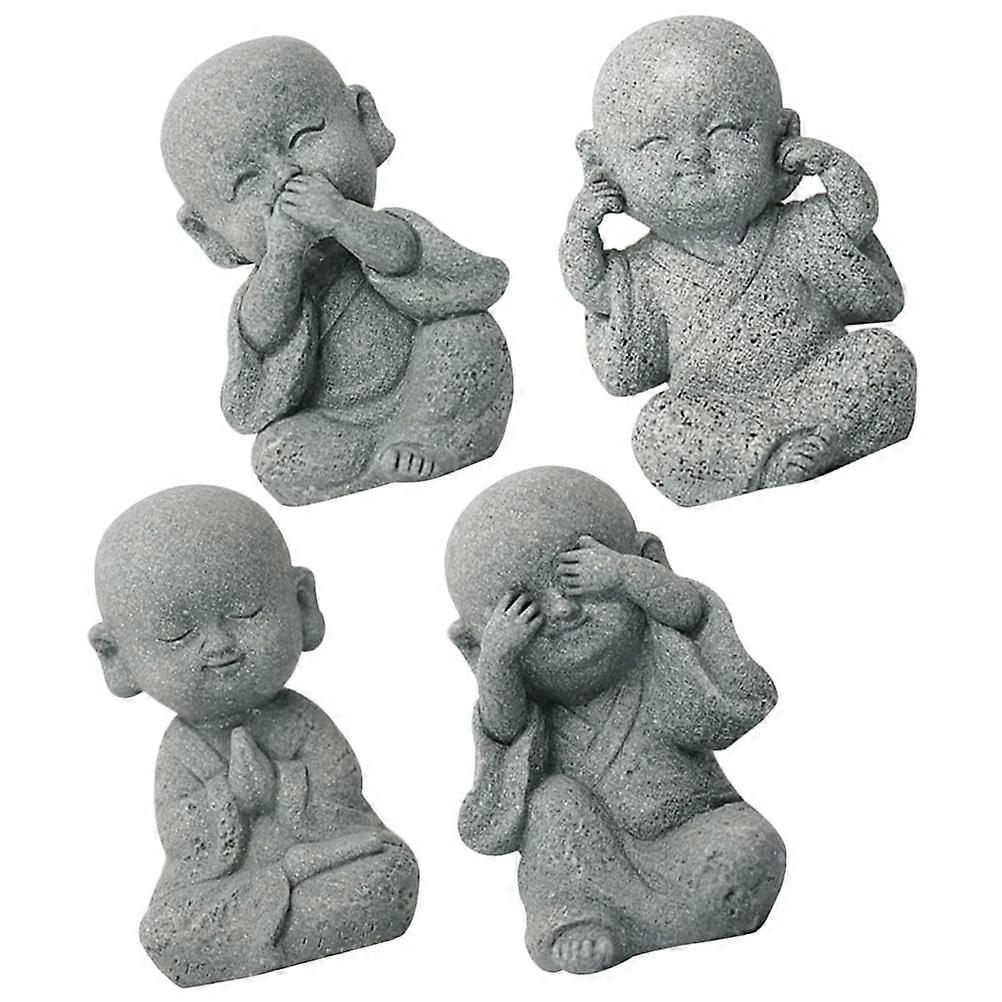 4pcs Small Monk Statue Little Monk Ornament Small Buddha Figurine Landscaping Decor