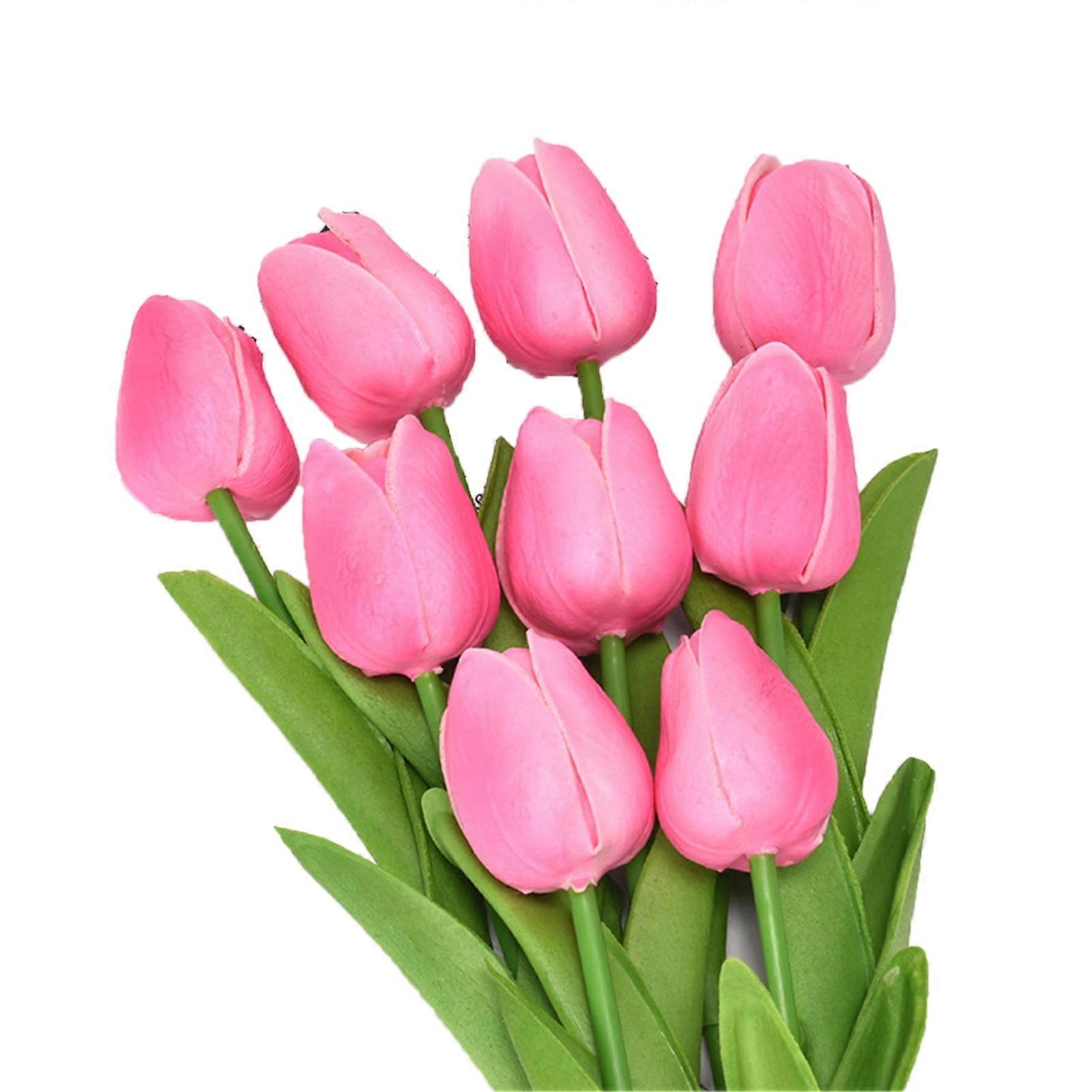 Farfi 5Pcs Artificial Tulips Lifelike Realistic Plastic Faux Silk Floral Simulation for Home (Pink)