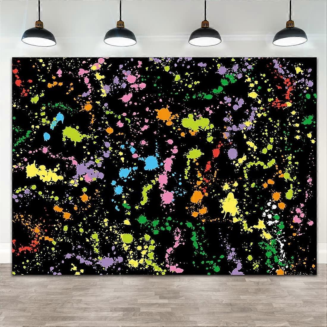 Custom Colorful Paint Splash Backdrop, Abstract Graffiti Style, Neon Glow Splatter, Hip Hop Disco Retro 80's 90's Happy Birthday Glow Party Art Vinyl