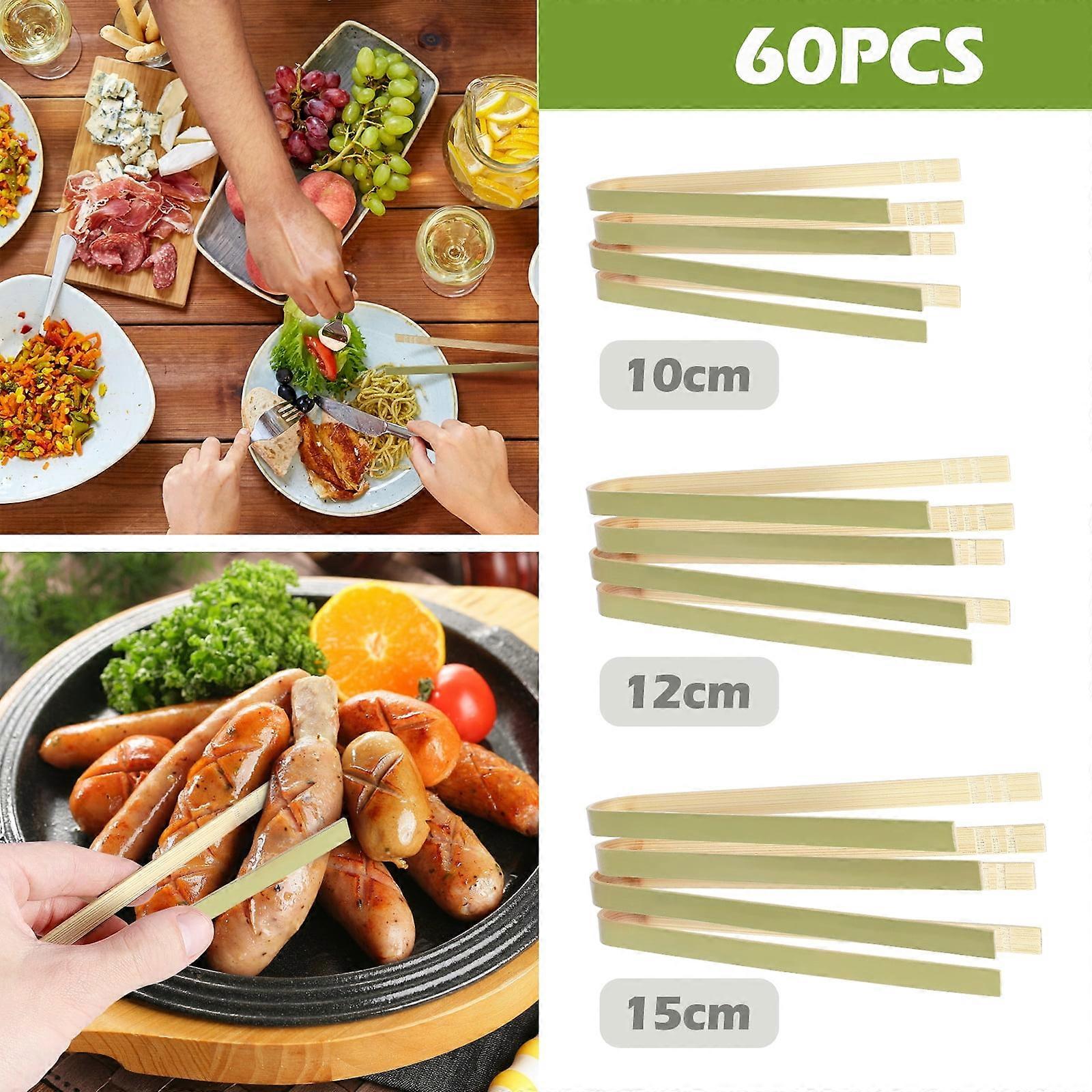 60 Pcs Mini Bamboo Tongs, Reusable Food Cooking & Serving Tongs for Catering, Party Buffet, Appetizer, Home Use