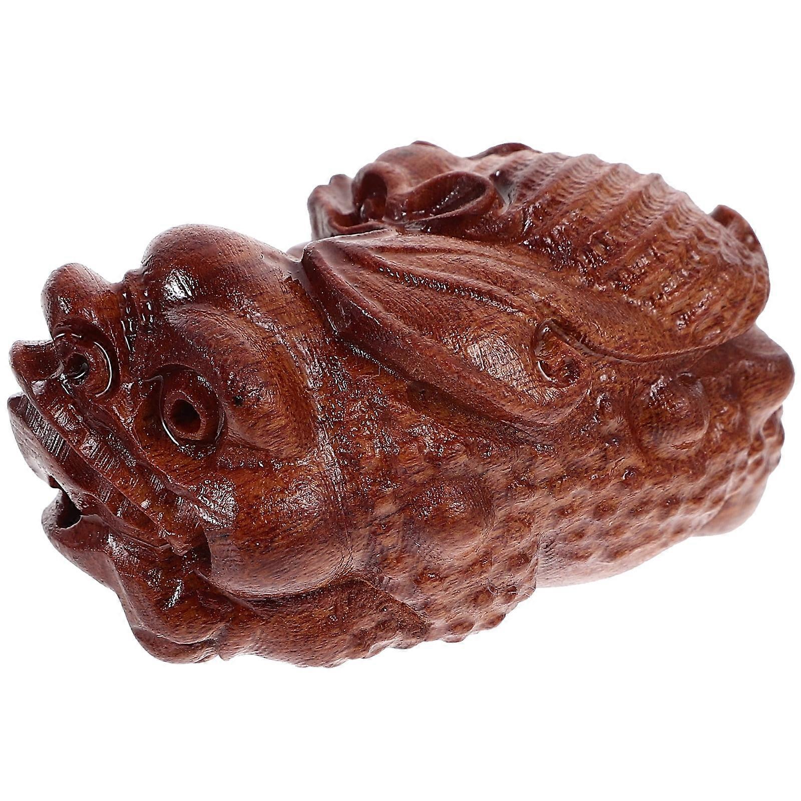 Wood Carved Toad Carving Toad Statue Wooden Carved Craft Ornament for Home