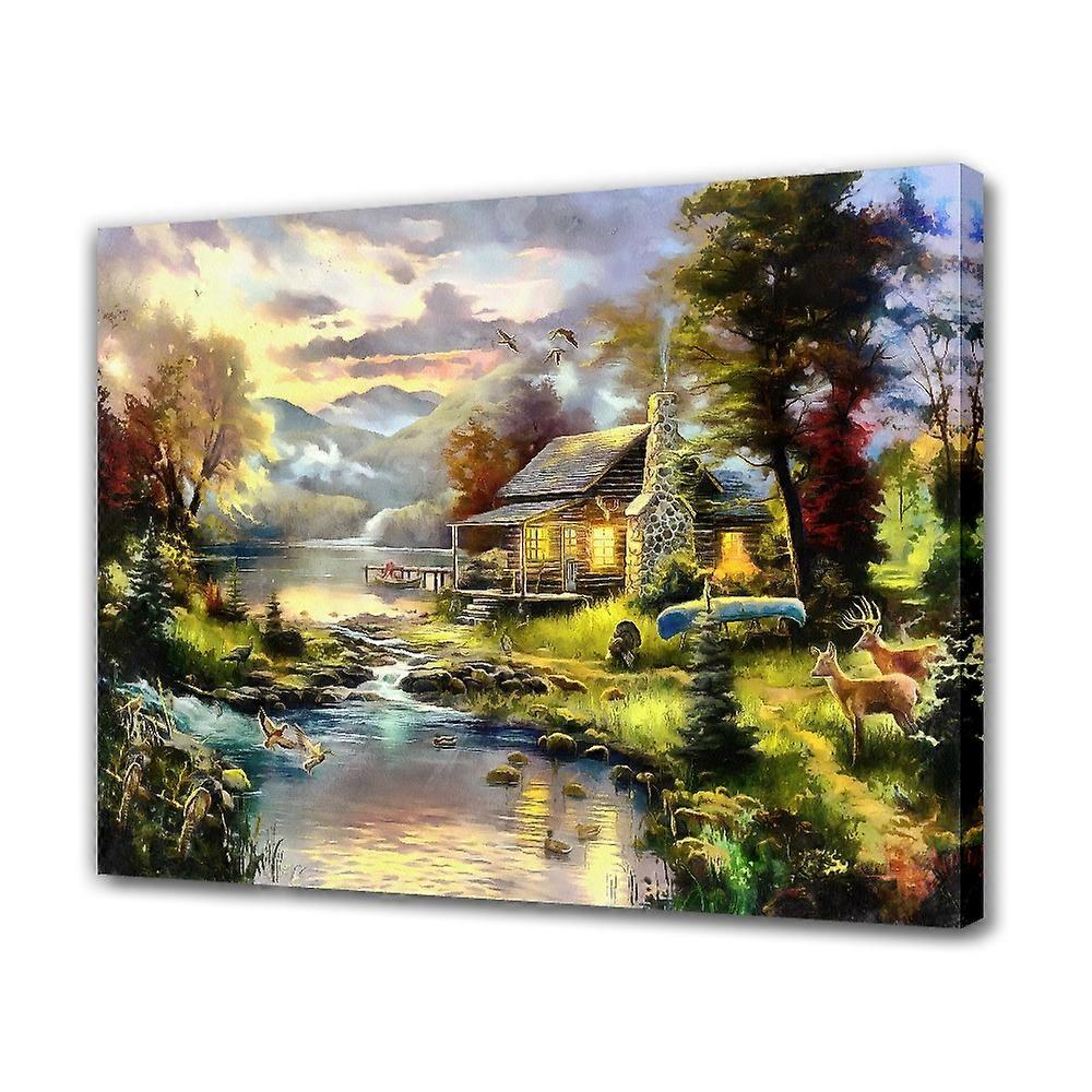 Farmhouse Mountain Lake Nature Paradise Poster, Compatible with Living Room & Bedroom Decor, 8x12inch Canvas Wall Art