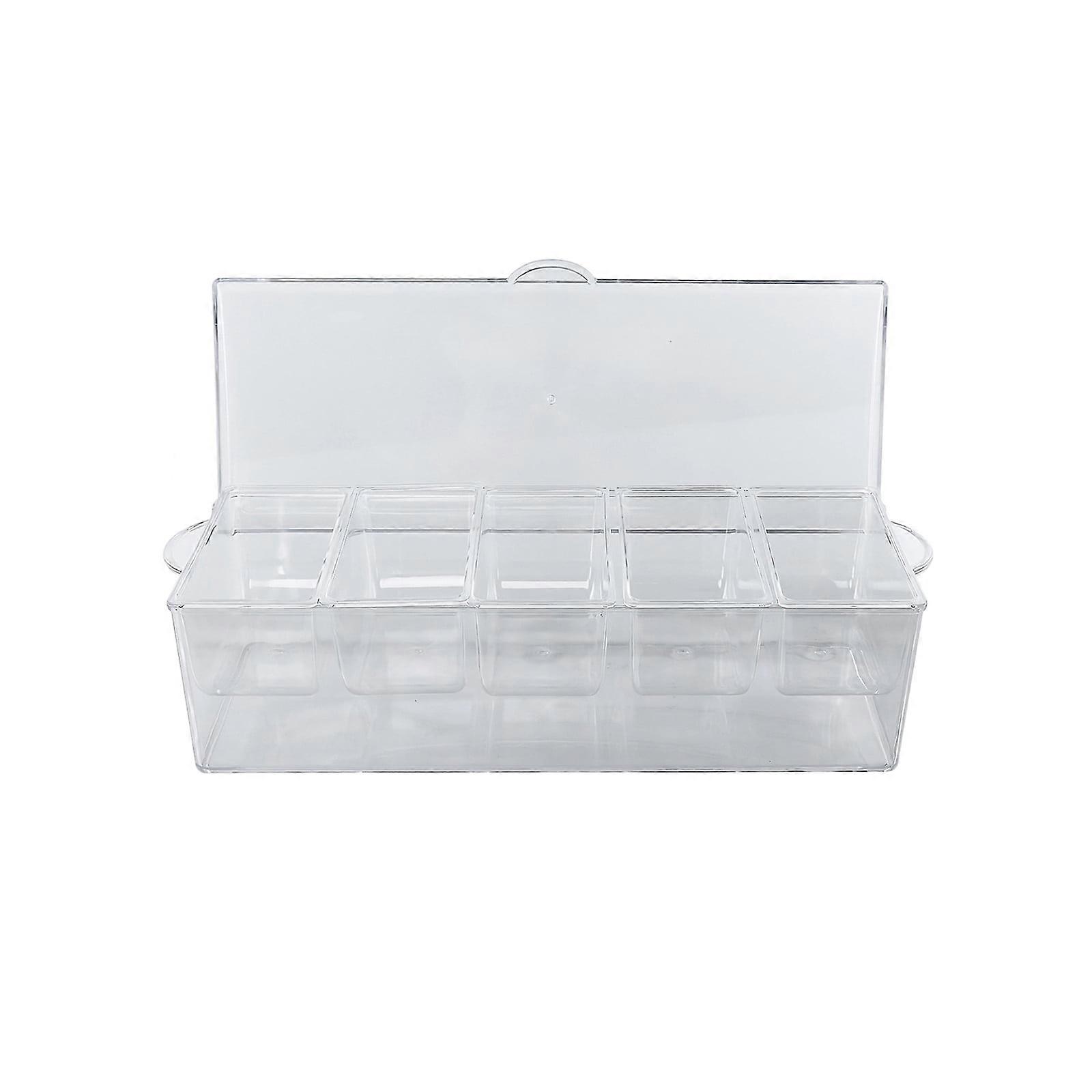 YOBOLK Clearance Kitchen Organizer with 5 Containers & Lid, Chilled Condiment Caddy Compatible with Bar Accessories for Home Party