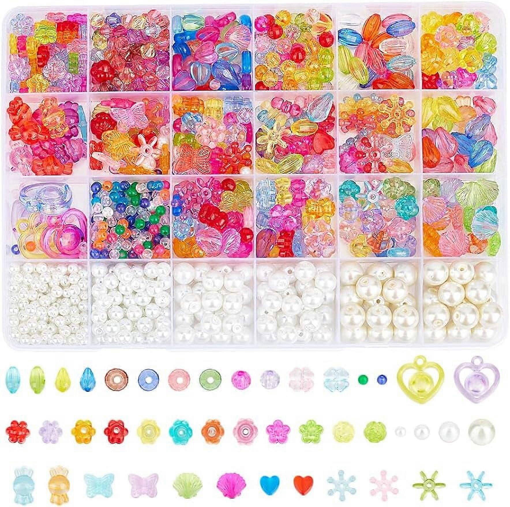 945 Pcs 24 Styles Acrylic Beads Jewelry Kit, Glass Pearls, Butterfly & Flower Charms, Mixed Colors for Necklace Making
