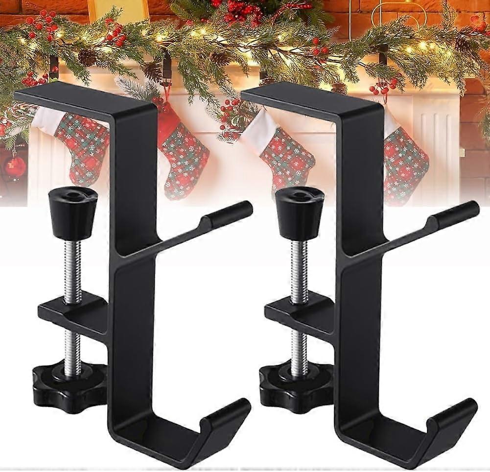 2 in 1 Garland & Stocking Mantel Holders with 2 Hooks, Heavy Duty Fireplace Hanger for Christmas Decor, Compatible with Xmas (Black, 2 pcs)