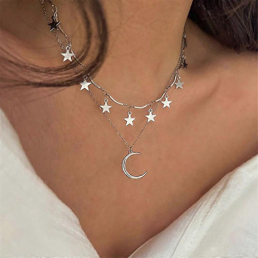 Star Charm Necklace Moon Pendant Necklace Set Exquisite Fine Chain And Multiple Pendant Pendant Necklace Elegant Simple Style