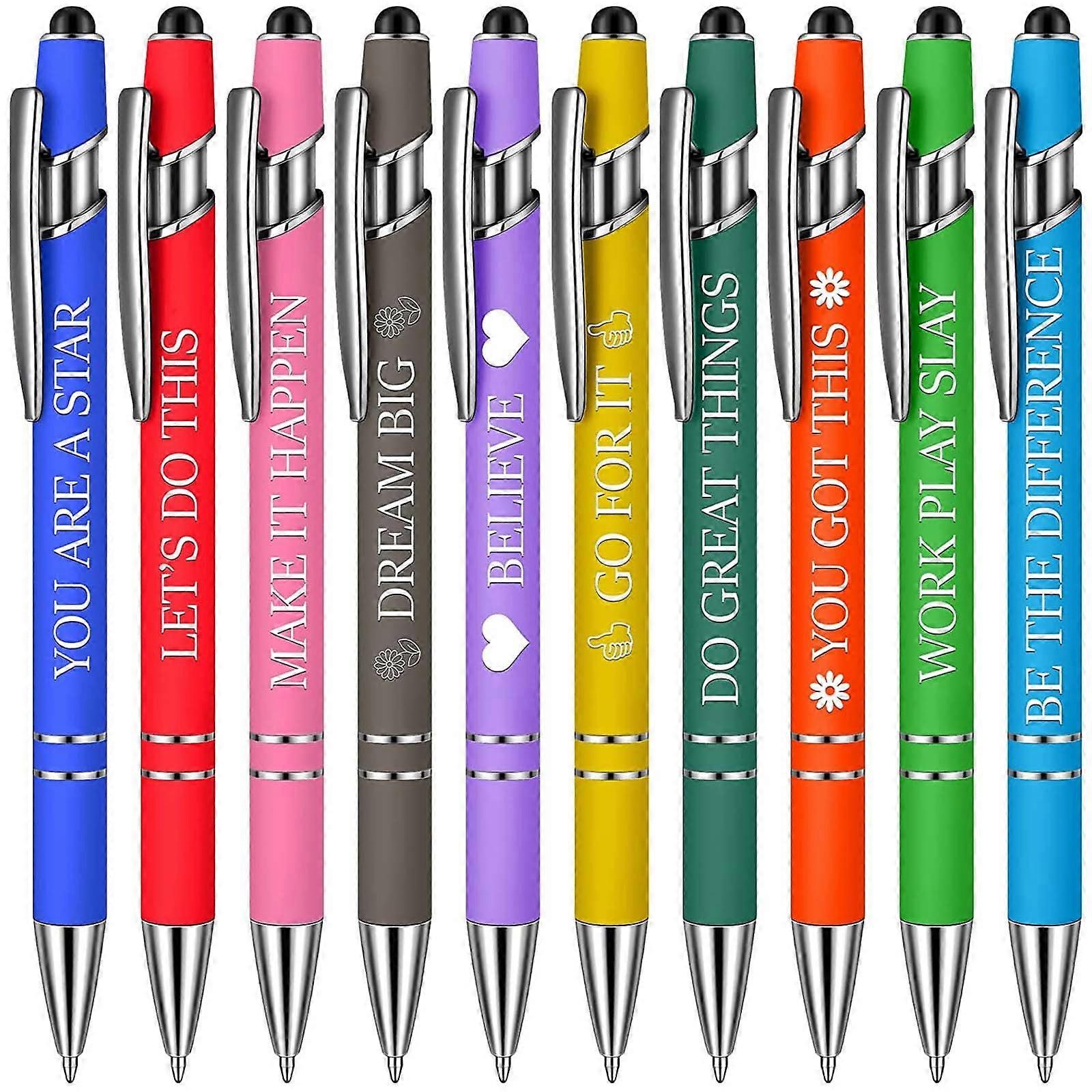 10 Pieces Motivational Sarcastic Quotes Ballpoint Pen, Office Gifts 2 in 1 Stylish Metal Stylus Pen for Touch Screens, 1.0 mm Black Ink