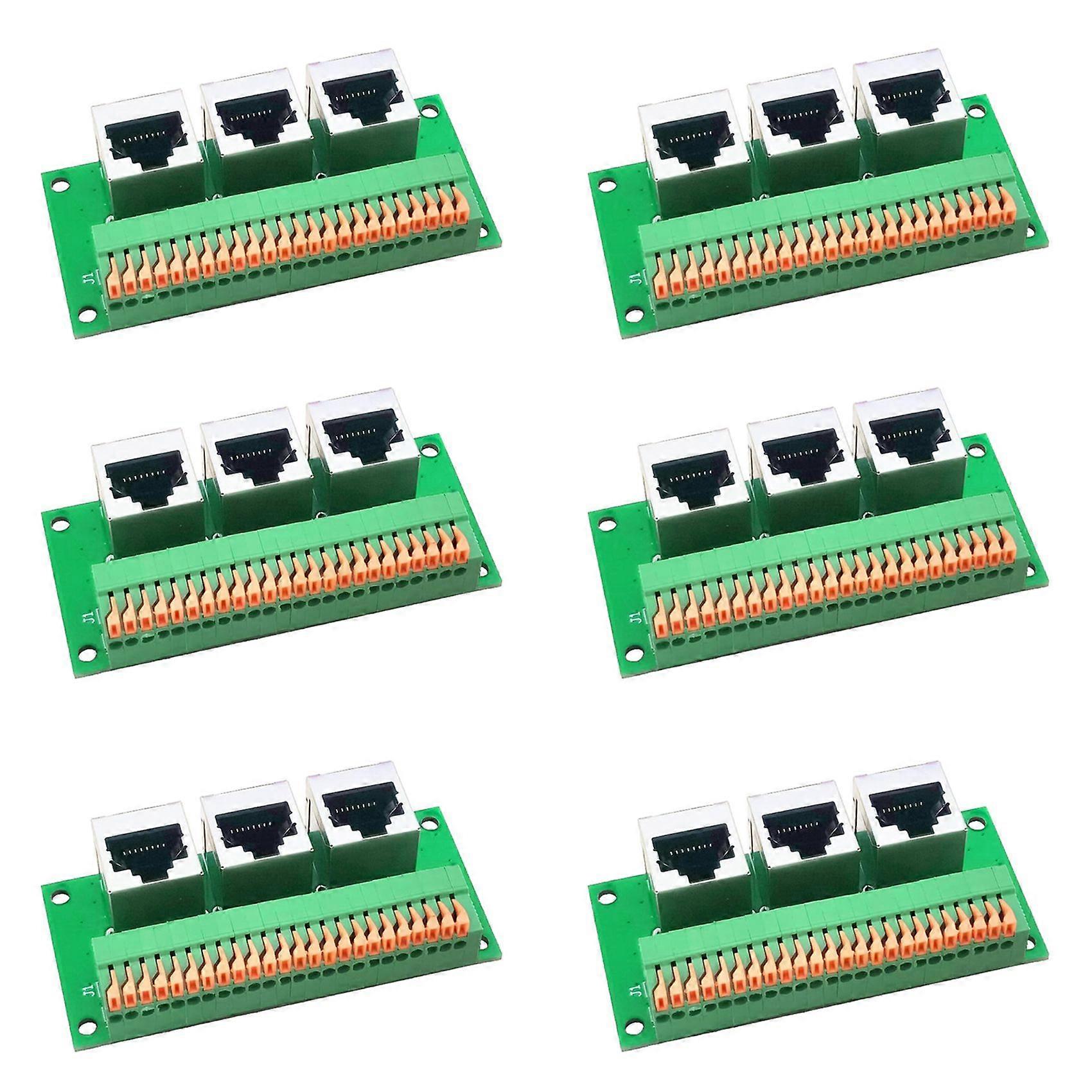 6X RJ45 Female Breakout Board,Solderless RJ45 to 8Pin Quick Spring Terminal,Three Ways RJ45 Female Connector