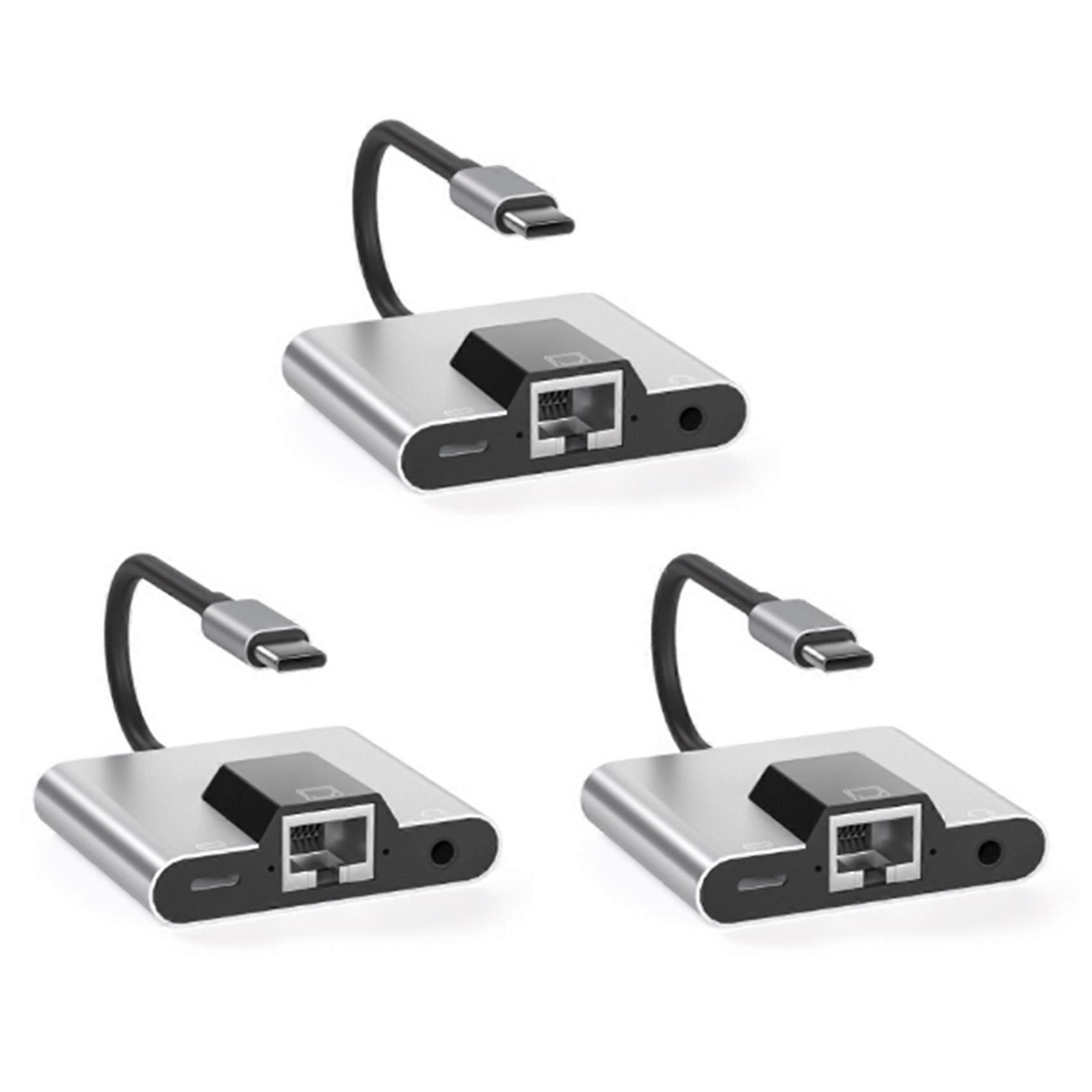 3X Type-C to Ethernet LAN Network Adapter Hub USB C to 3.5mm Audio PD Fast Charging Docking Station for Laptop Phone