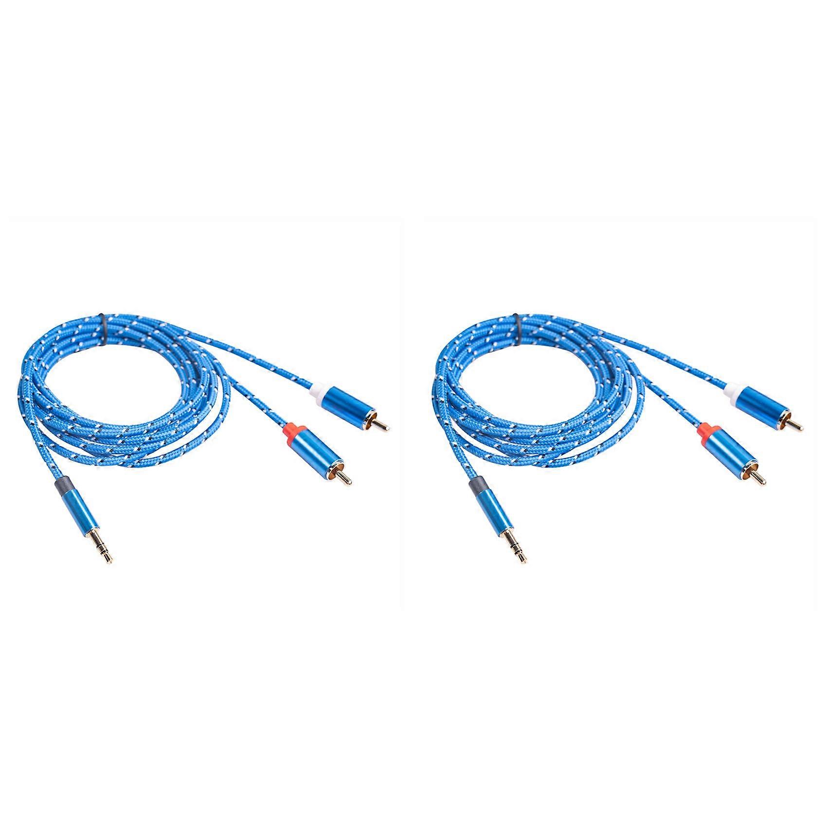Product material: The plug is gold-plated, the wire is TPE, the outer woven fiber mesh, and the conductor is copper wire. The shell is aluminum alloy Features: Using copper core conductor, no loss of sound quality. The wire is protected by a braided mesh, which is effectively tensile, pressure-resistant and dirt-resistant. The shell is made of aluminum alloy oxidation, which does not fade, and the appearance is high-end and beautiful. The copper material of the plug is gold-plated, which has good transmission performance, low transmission loss, and is not easy to oxidize and decolorize for a long time. Product Usage: Used for mobile phones, tablets, laptops, MP3/mp4 and other devices to connect to power amplifiers or active speakers with RCA input interfaces. Can connect mobile phone tablet with 3.5mm interface to active speaker with RCA interface, power amplifier. You can also connect the audio player with RCA interface to the desktop speaker with 3.5mm interface, power amplifier. Support bidirectional transmission, regardless of positive or negative. Type:AUX Cables Connector B:RCA Connector B:AUX Gender:Male-Male Model Number:3.5 jack to 2 RCA audio cable Shielding:Braid color:Blue Material:Gold plating+TPE+fiber mesh+copper wire+aluminum alloy size: length about 1.8m Package Contents: 2 x Audio cable