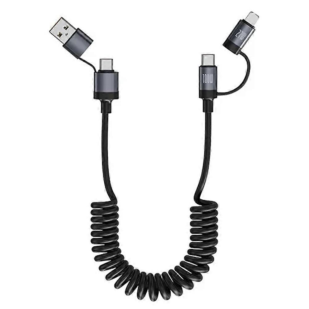 100W 2-to-2 Car Spring Retractable Data Cable Suitable for Apple Type-C Huawei 6A 4-in-1 Fast Charging Cable