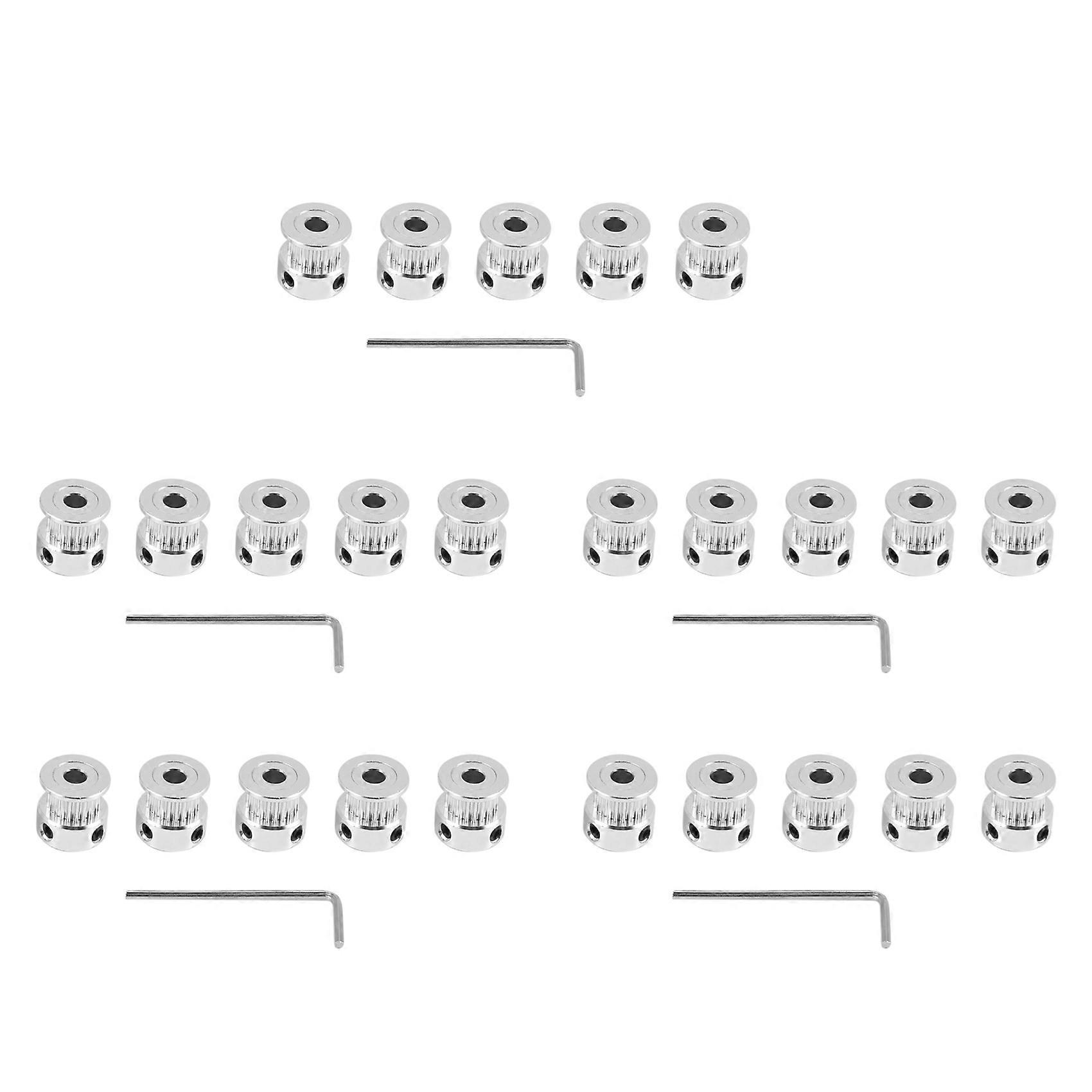 25PCS Aluminum GT2 Timing Belt Pulley 20 Teeth Bore 5mm Width 6mm and Wrench for RepRap 3D Printer Prusa I3