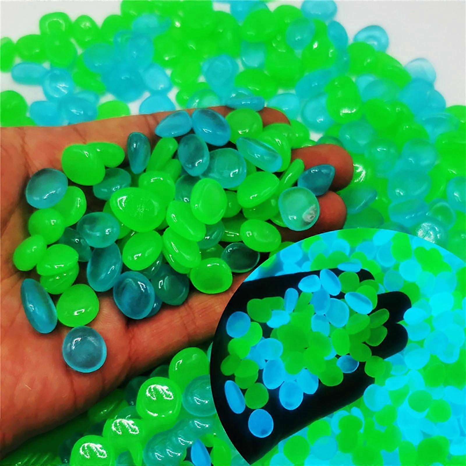Glow Rocks for Landscaping 300Pcs Blue & Green Mix, 17×13mm Luminous Pebbles, Artificial Fluorite, Fluorescent Stones