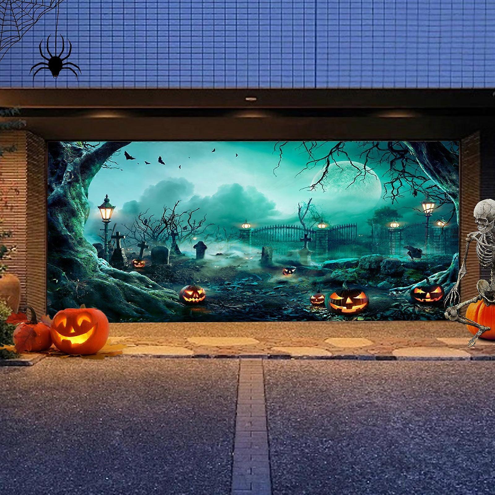 Herrnalise Halloween Garage Door Banner 5.9x13Ft Large Backdrop Cover, Gloomy Themed Wall Decoration for House Party Decor
