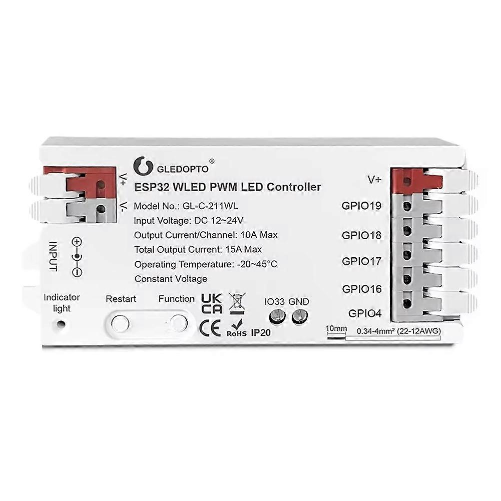 GLEDOPTO ESP32 PWM WLED LED Controller 5 Modes in 1 DC 12-24V WiFi App Control for RGBCCT RGBW RGB WWCW CCT Dimmer Strip Light