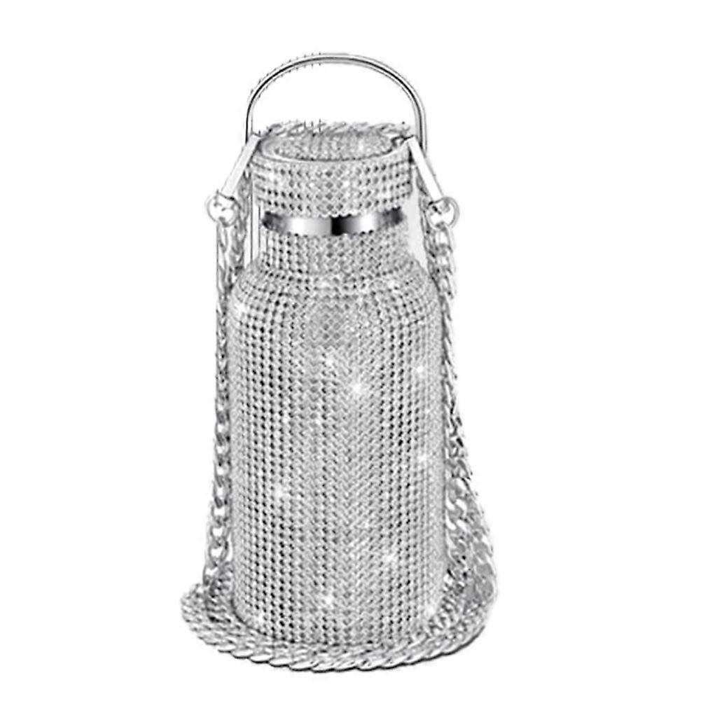 Bling Water Bottle Silver Rhinestone Glitter Bottle with Chain Rhinestone-Encrusted Stainless Steel Thermos Bottle 350ml