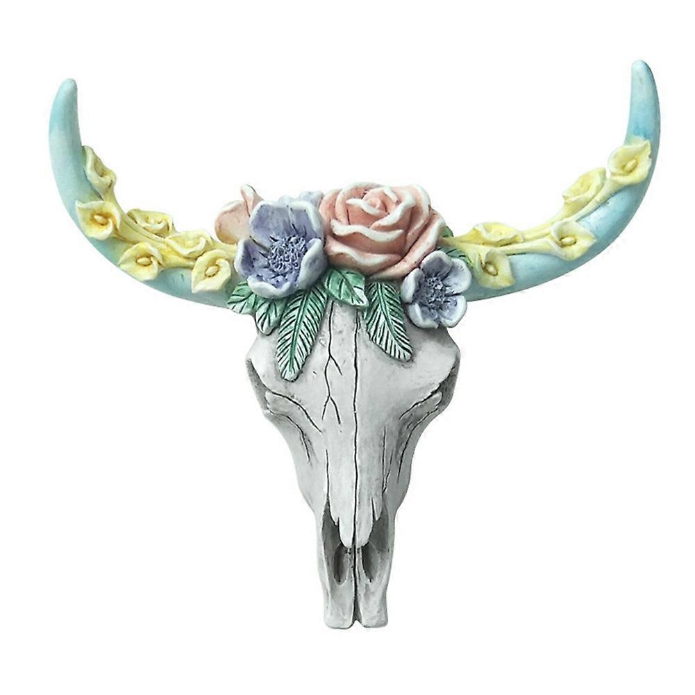 Cow Skull Wall Pendant Succulents Flower Cow Head Miniature Figurines Animal Sculpture Home Hanging Ornaments Decor L