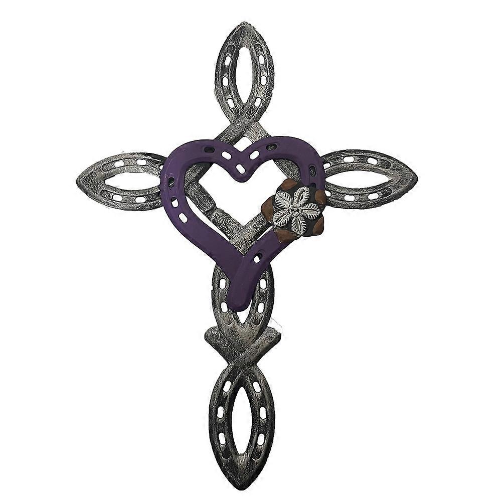 Natural Horseshoe Cross with Heart, Metal Craft Cross Horseshoe Heart Decor, Rustic Metal Cross Sign Spiritual Purple