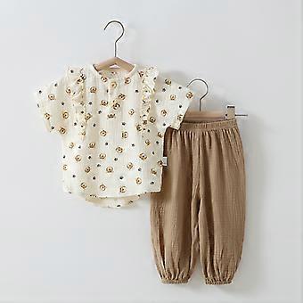 Baby girl's summer thin pure cotton gauze lace baby short-sleeved set mosquito-proof pants breathable outer layer