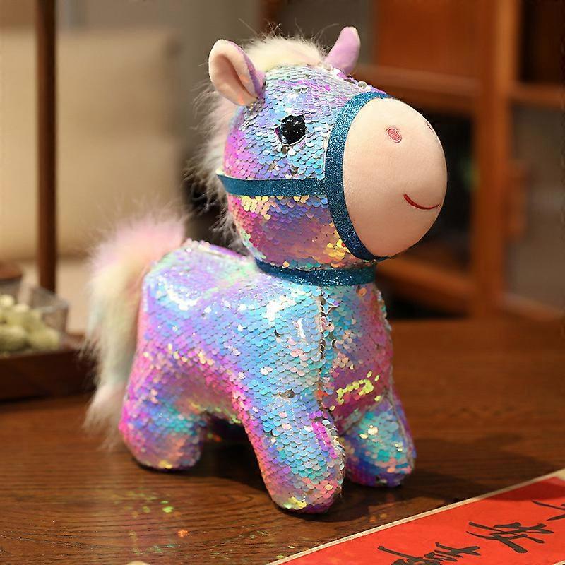 New Year Mascot Colorful Sequined Little Horse Plush Toys Stuffed Pretty Flashing Horse Pendants Doll Gorgeous Festive Decor