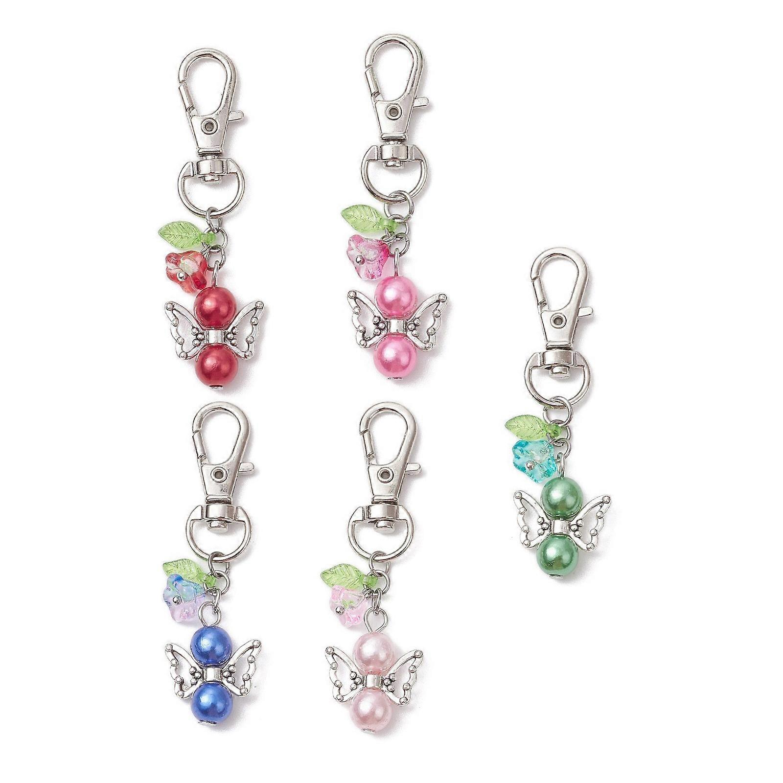 Set of 5 Sturdy Alloy Materials Keychains Charm Pendant Featuring Angelic And Colorful Floral Pattern Daily Use Multicolor