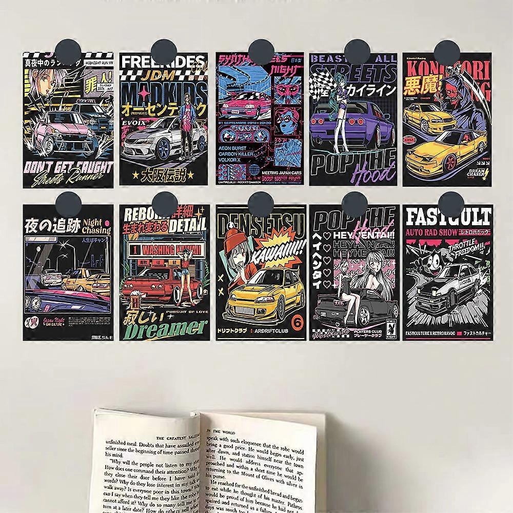 10 Japanese Retro Cartoon Racing Decorative Cards for Dormitory/Bedroom Postcards, Photo Frames, Wall Stickers, and Card Stickers