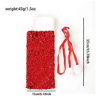 Christmas wine bottle sleeve decorations, sequined plush red wine sleeves, home dining table wine bottle decoration props