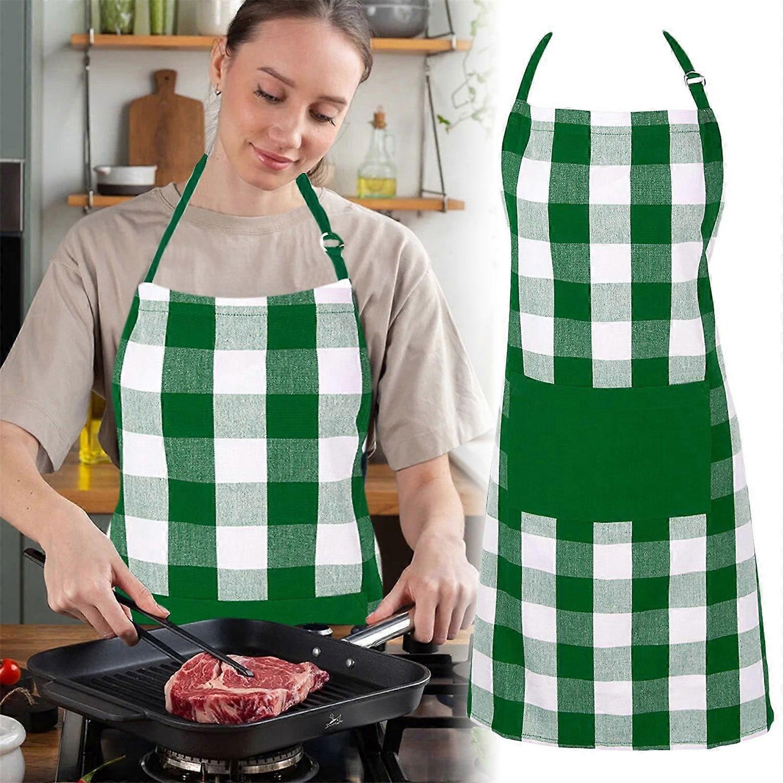 Begine|Kitchen Apron Clearance, Check Chef Apron Plaid Apron Neckline and Belted Apron Cooking Aprons for Women Men, White, Apron