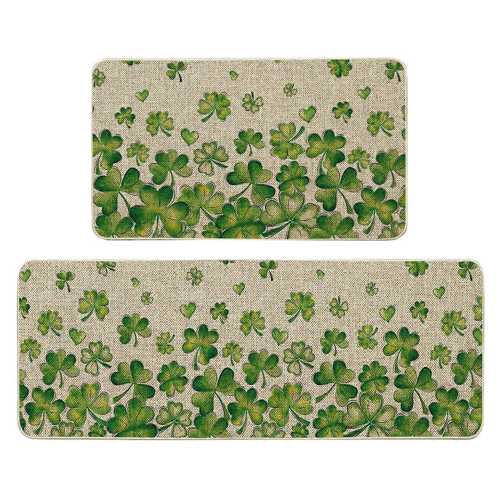 2pcs Easter Doormat 16x43, Flower Spring Mats, Non-Slip Kitchen Rugs, Front Door Mat Decorative for Home Office, St Patrick's Day Decoration