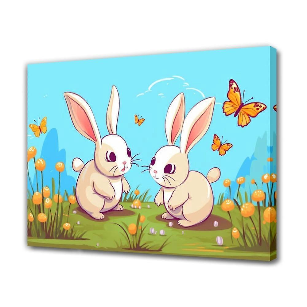 Adorable Cartoon Rabbits on Meadow Canvas Poster, 12x18in - Cute Bedroom & Office Decor Gift