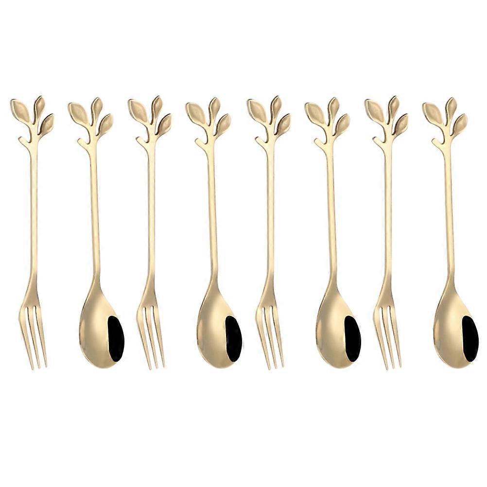 6 Pcs Stainless Steel Forks Metal Cooking Spoon Creative 3-leaf Shaped Dessert