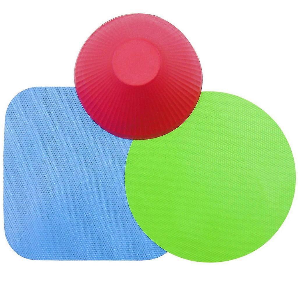 Features: brand new and high quality Silicone Jar Gripper:Three shapes to accommodate different jar. Red cone-shaped ribbed grip for smaller bottles and jars and teal square and green round flat grip for large jars. Home Must-have Tools:Very practical kitchen gadgets make your cooking more convenient. Make it easier for you to prepare a sumptuous holiday dinner for your family. Non-slip:Made of premium rubber material, non-slip, anti-scald. There are many fine lines on the surface of the anti-skid jar opener gripper, which is effective anti-skid and not easy to release. Open the Bottle Effortlessly:Put the rubber gripper jar opener on the top of the bottle and twist it in the direction indicated so that the lid can be opened easily, suitable for stubborn jars and containers of all sizes. Multi-purpose Mats:The round shape jar grippers can not only used be lid opener but also used as coasters and home decorations. Package Includes: 1 Set Silicone Pad Jar Bottle Lid Opener Specifications: Material:Silicone Color:As the Picture Size: Approx. 12.8x12.8 for cm/5.03x5.03 inches(Square Shape) Size: Approx. 12.5x12.5 for cm/4.92x4.92 inches(Green Round Shape) Size: Approx. 12.8x12.8 for cm/5.03x5.03 inches(Red Round Shape) note: 1.Please allow 0-2cm errors due to manual measurement, make sure that you do not mind before you order. 2.Due to the difference between different monitors, the picture may not reflect the actual color of the item. 3.Other parts are not included. Thanks for your understanding. brand new and high quality Silicone Jar Gripper:Three shapes to accommodate different jar. Red cone-shaped ribbed grip for smaller bottles and jars and teal square and green round flat grip for large jars. Home Must-have Tools:Very practical kitchen gadgets make your cooking more convenient. Make it easier for you to prepare a sumptuous holiday dinner for your family. Non-slip:Made of premium rubber material, non-slip, anti-scald. There are many fine lines on the surface of the anti-skid jar opener gripper, which is effective anti-skid and not easy to release. Open the Bottle Effortlessly:Put the rubber gripper jar opener on the top of the bottle and twist it in the direction indicated so that the lid can be opened easily, suitable for stubborn jars and containers of all sizes.