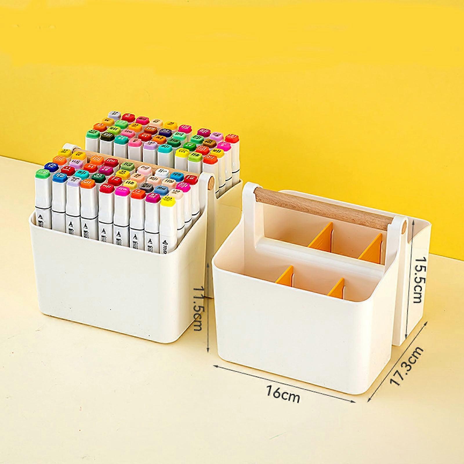 FloHua Back to School Supplies Clearance: Large Capacity Handheld Color Pen Marker Storage Box with Compartments, Compatible with Student Brushes &