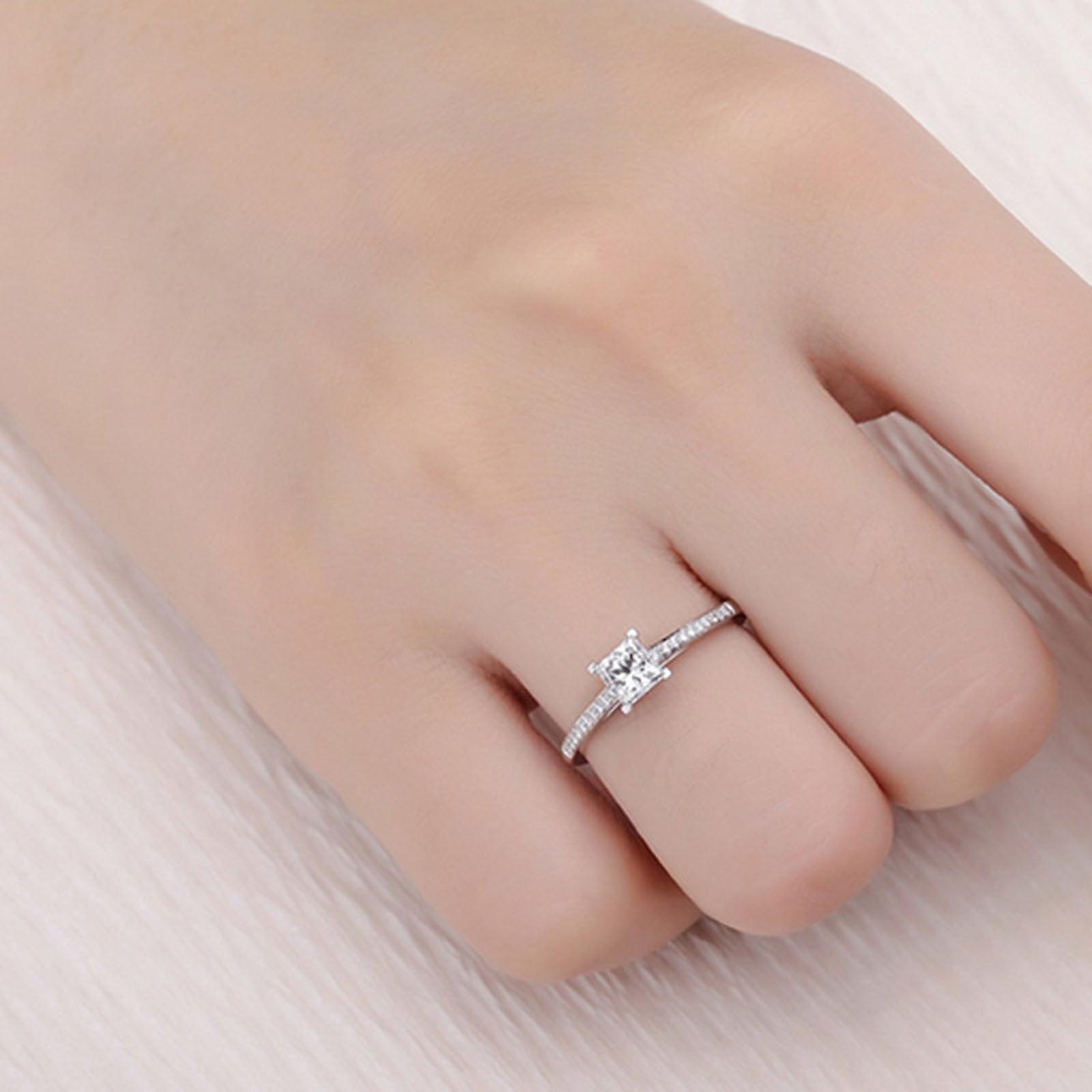 Rings for Women Fashion Four-Claw Artificial Diamond Simple-Style Japanese and Korean Ring Size 7 Valentine's Day Gifts