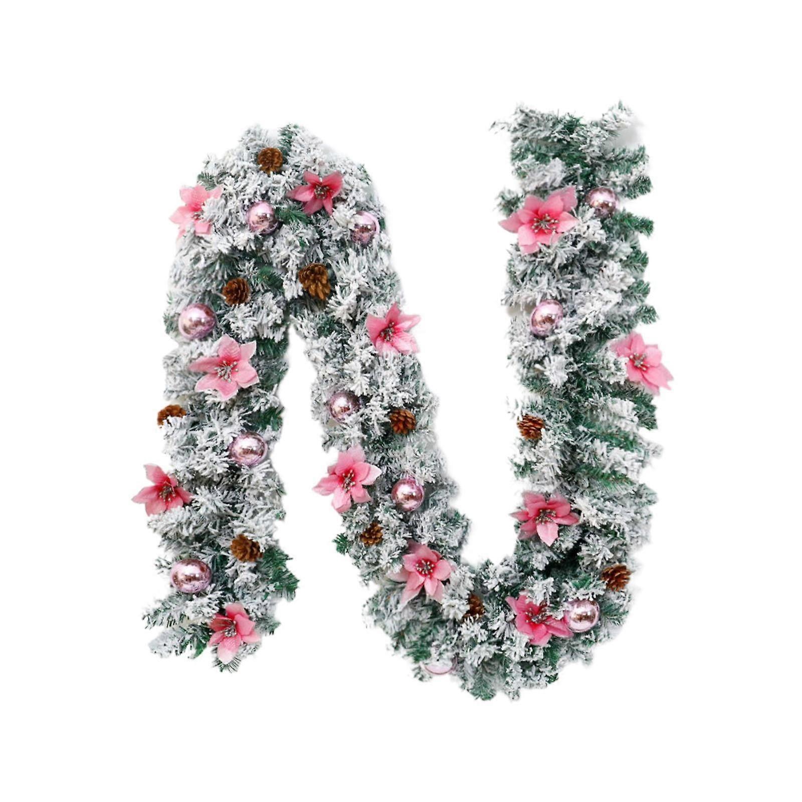9Ft Pink Cedar Christmas Garland with Lights, Snow Flocked Artificial Wreath w/ Pinecones & Berries for Stairs, Fireplace, Wall, Door Decor
