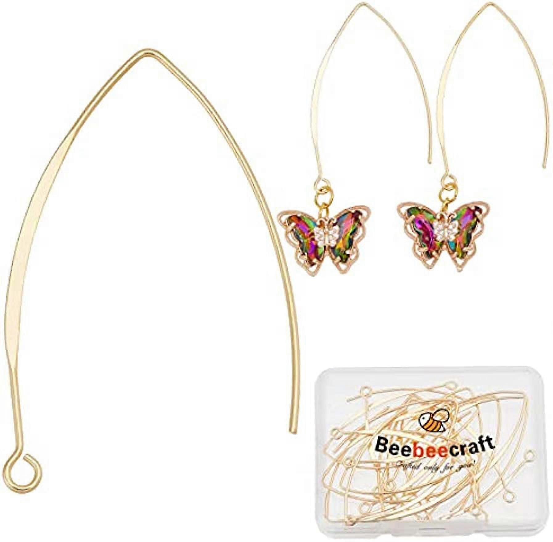 1 Box 20Pcs 18K Gold Plated Ear Wires V-Shape 43mm Drop Earring Hooks
