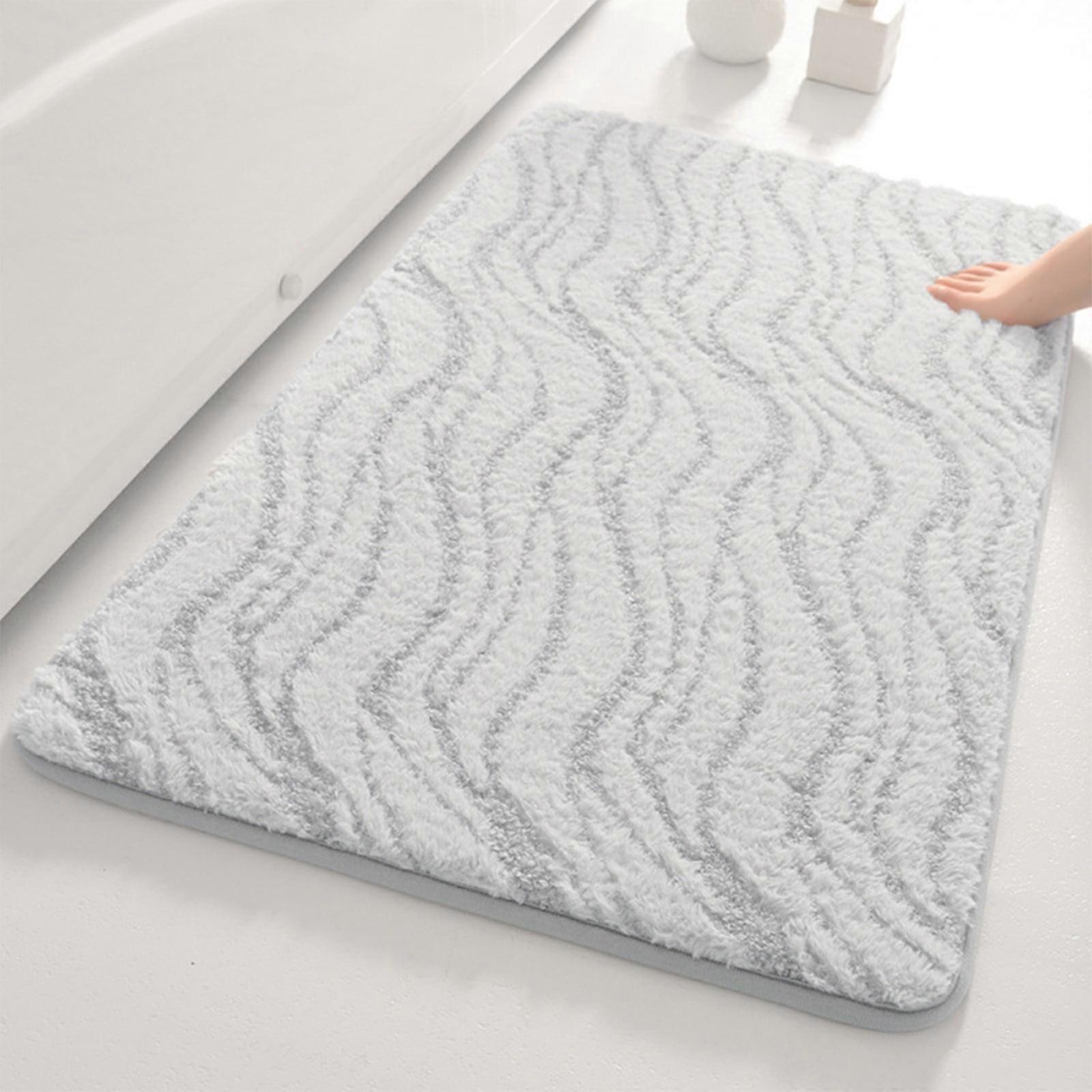 VALSEEL Bathroom Rug Extra Thick Microfiber Striped, Non-Slip Water-Absorbent Floor Mat for Bathroom Kitchen Doorway