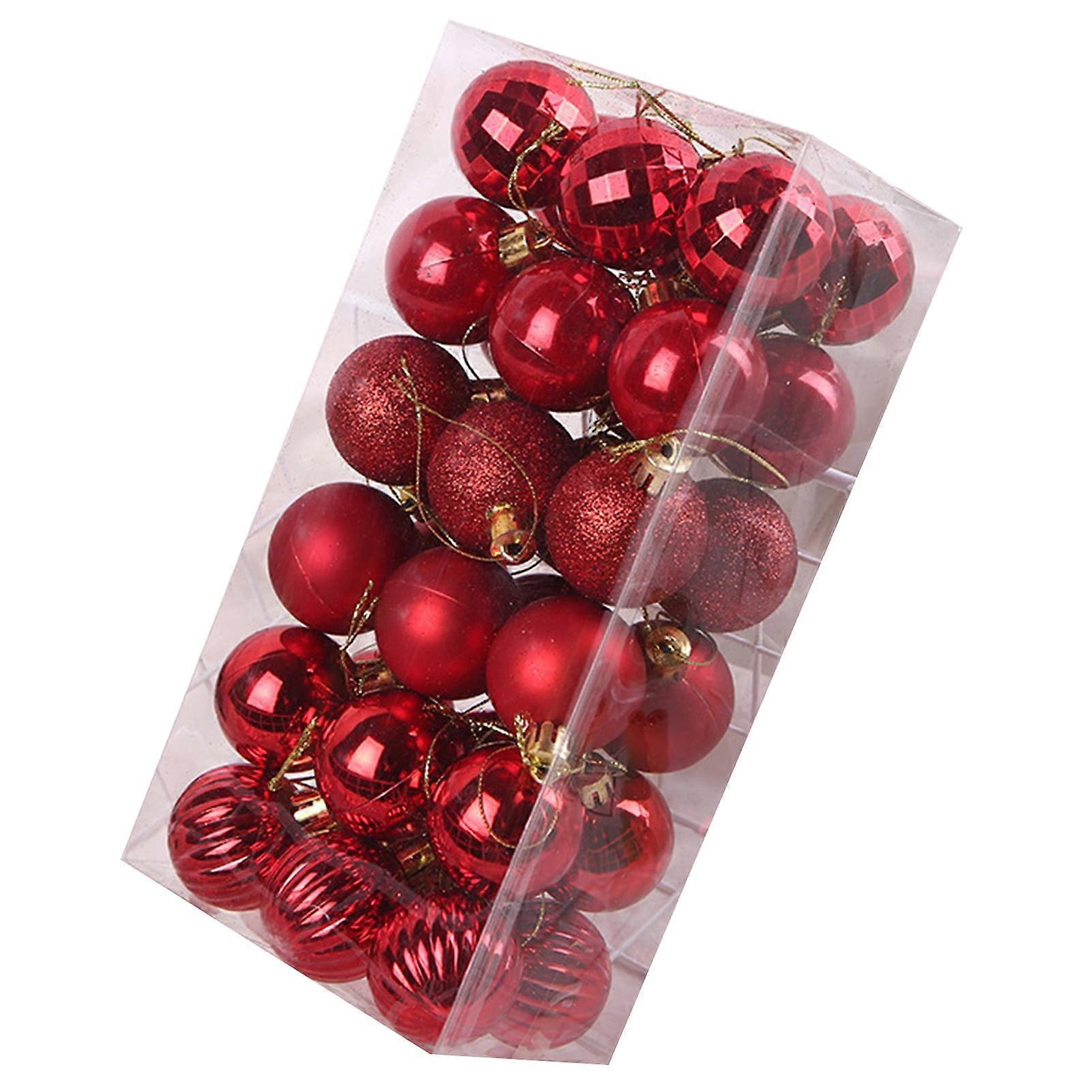 HEVIRGO 36Pcs 4cm Christmas Ornaments Red, Electroplated, Colorfast Unbreakable Baubles with Hanging Hole for Xmas Tree Party Decor - Compatible with