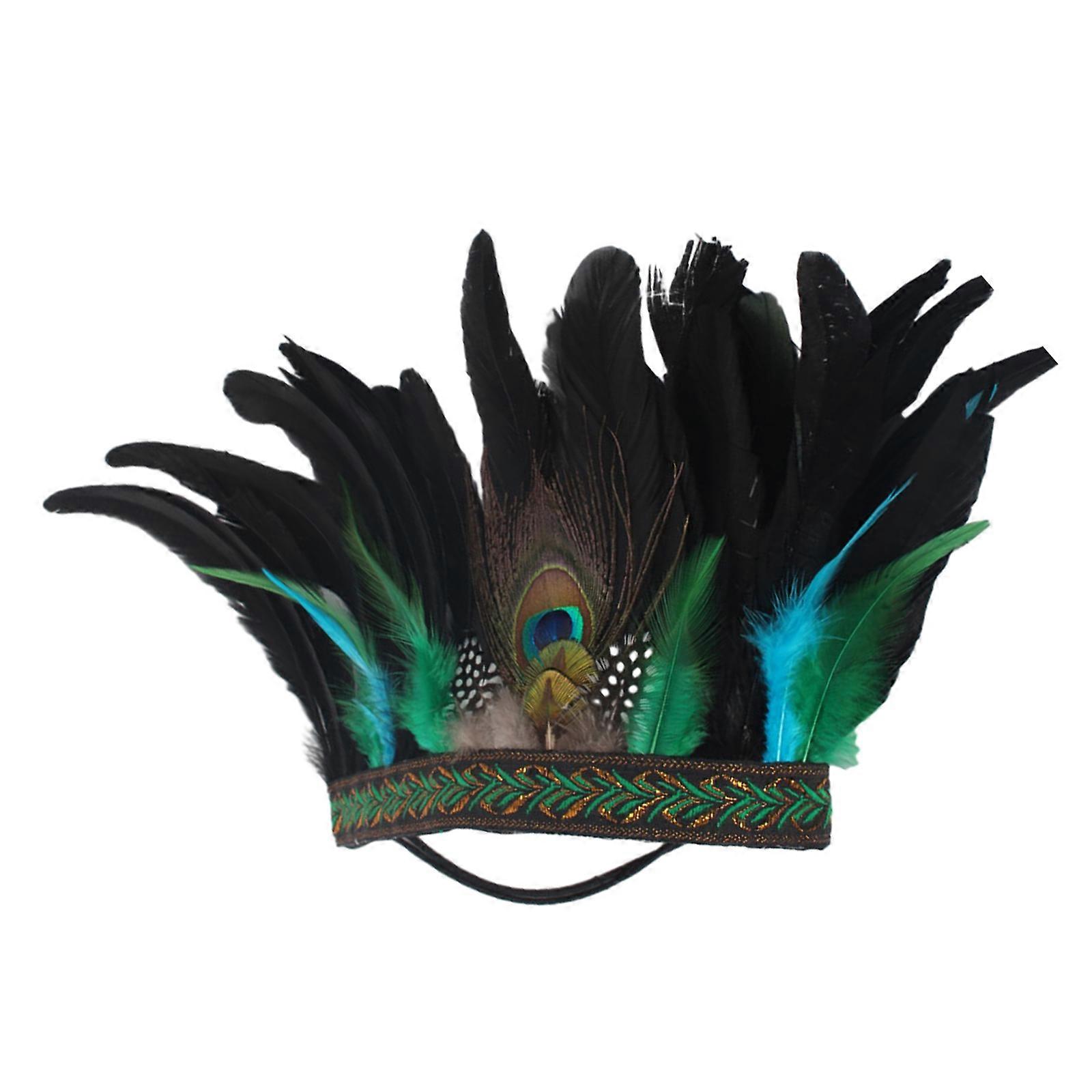 Ethnic Style Headband with Peacocks Feather Decors Unique Hair Hoop Women Bride Wedding Party Taking Photo Headband Multicolor