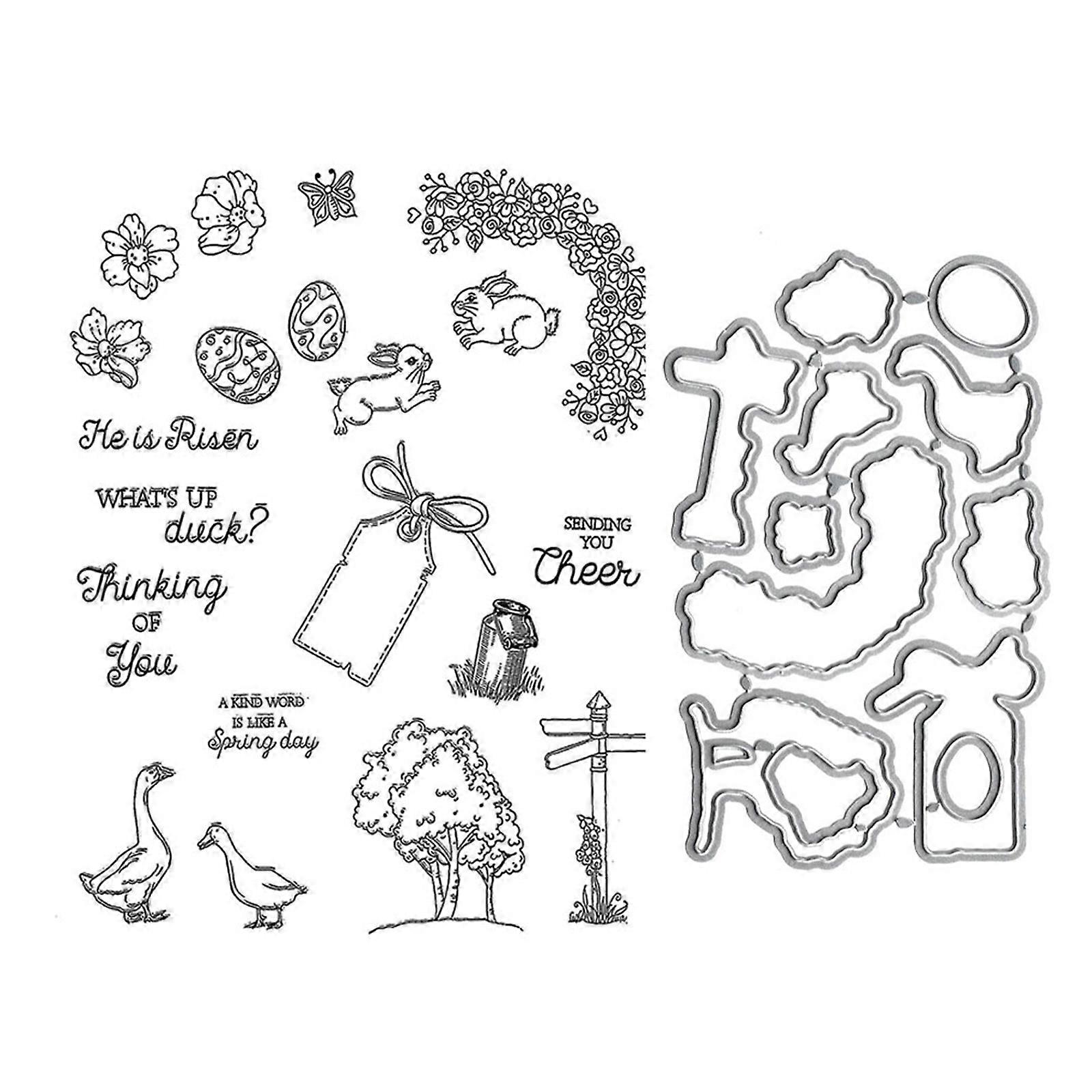 Easter Bunny Egg Seal Stamp with Cutting Dies Stencil Set DIY Scrapbooking Embossing Photo Album Decor Paper Card Craft Multicolor