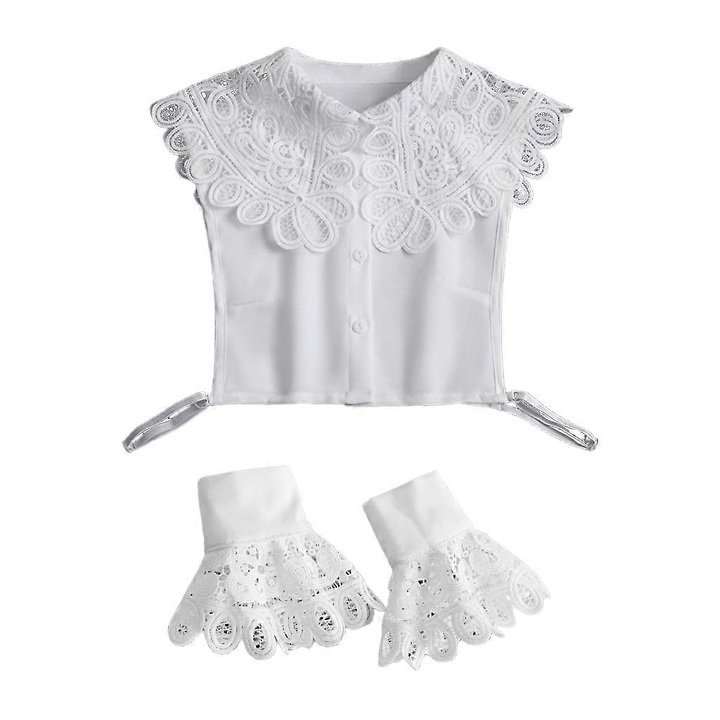 Women 2Pcs Hollow Lace Large Lapel False Collar with Fake Sleeves Wristband Set Multicolor