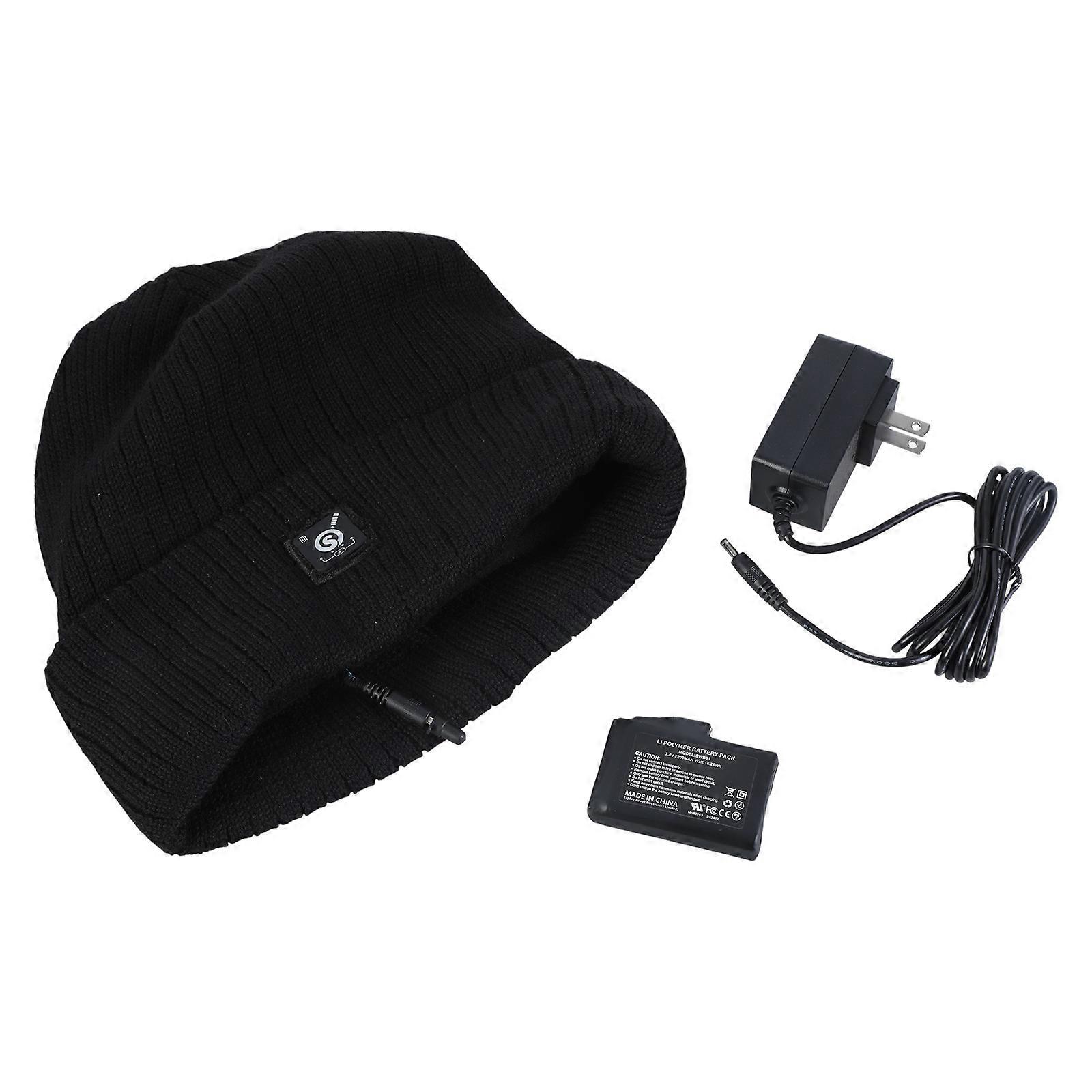 Men Women Winter Electric Heated Beanie Hat Rechargeable Battery Thermal Warm Plush Lining Outdoor Windproof Skull Cap Multicolor