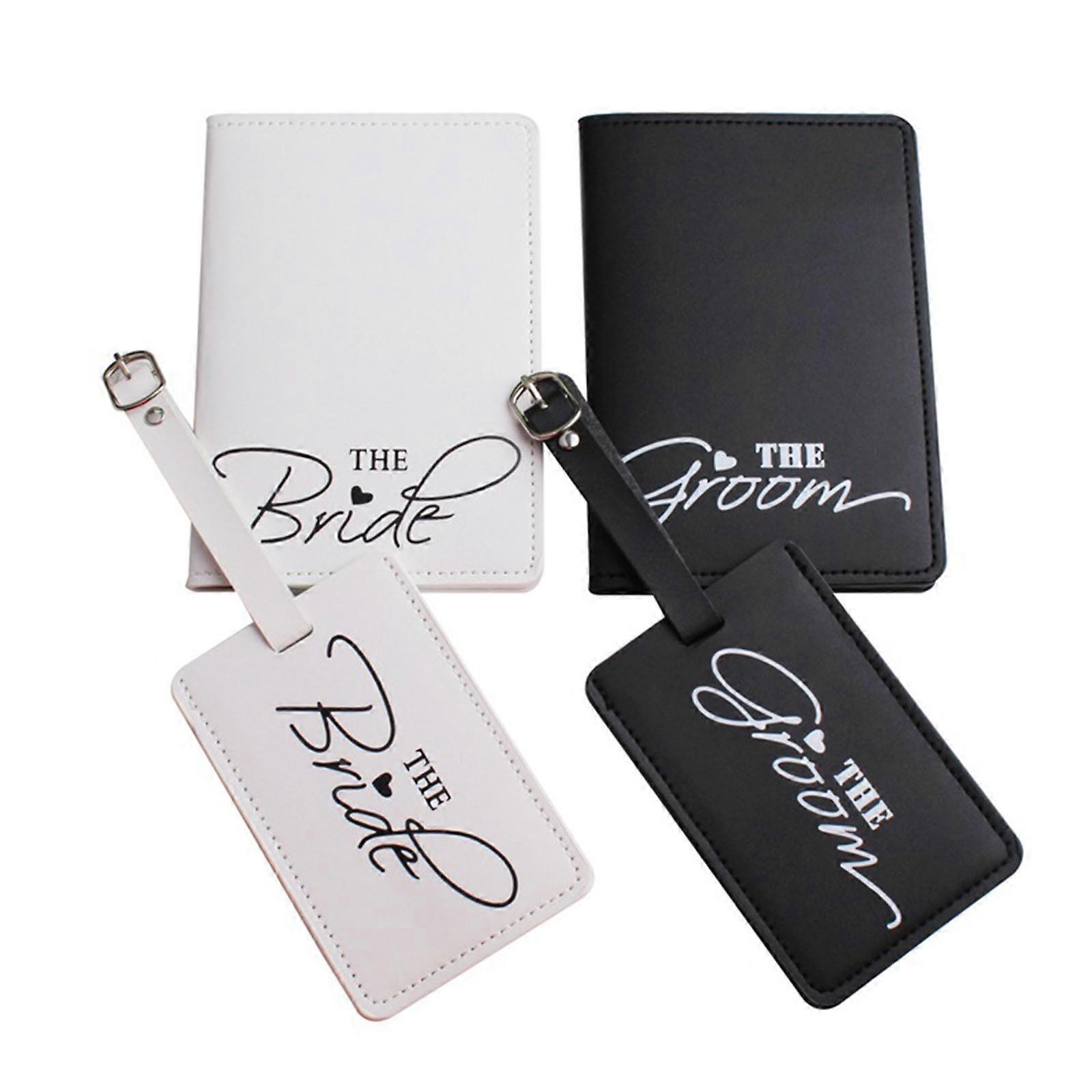 1Set PU Leather Luggage Tag Bride Groom Passport for Case for Couples Honeymoon Travel Organizer Multicolor