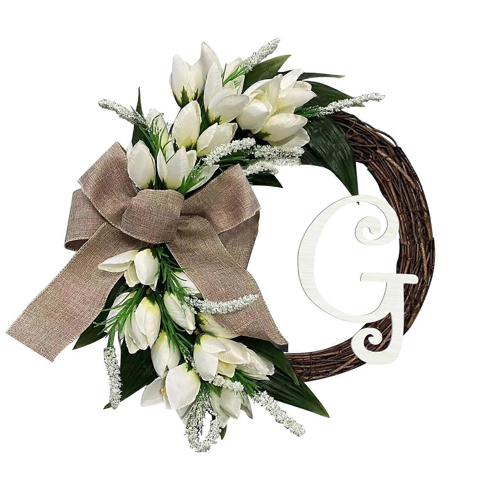 Miayilima White Grape Vine Door Wreath with A-Z Surname Letters, Natural Farmhouse Front Door Decor for Spring & Outdoor, compatible with all 26