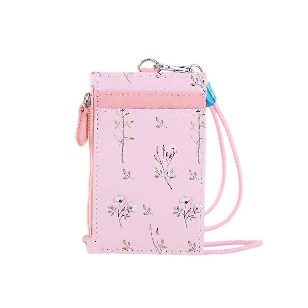 Portable ID Badge Credit Card Holder Leather Pocket for Case Business Wallet with Neck Lanyard Pink